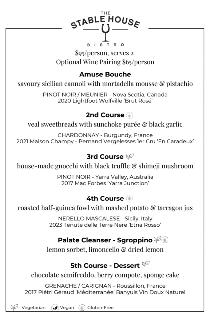 Step into a warm and charming European celebration as we say goodbye to 2025 and welcome the year ahead in true bistro style. Chef Matteo Pagotto has created a beautiful 5-course New Year’s Eve menu, perfectly complemented by optional wine pairings selected by Sommelier Christina Hartigan.